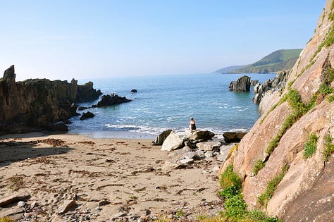 We left the car at the farm, walked through a few fields, descended towards the sea, and felt quietly smug about how well we planned this getaway, we even stopped at M&S at Exeter Services for some posh picky bits.